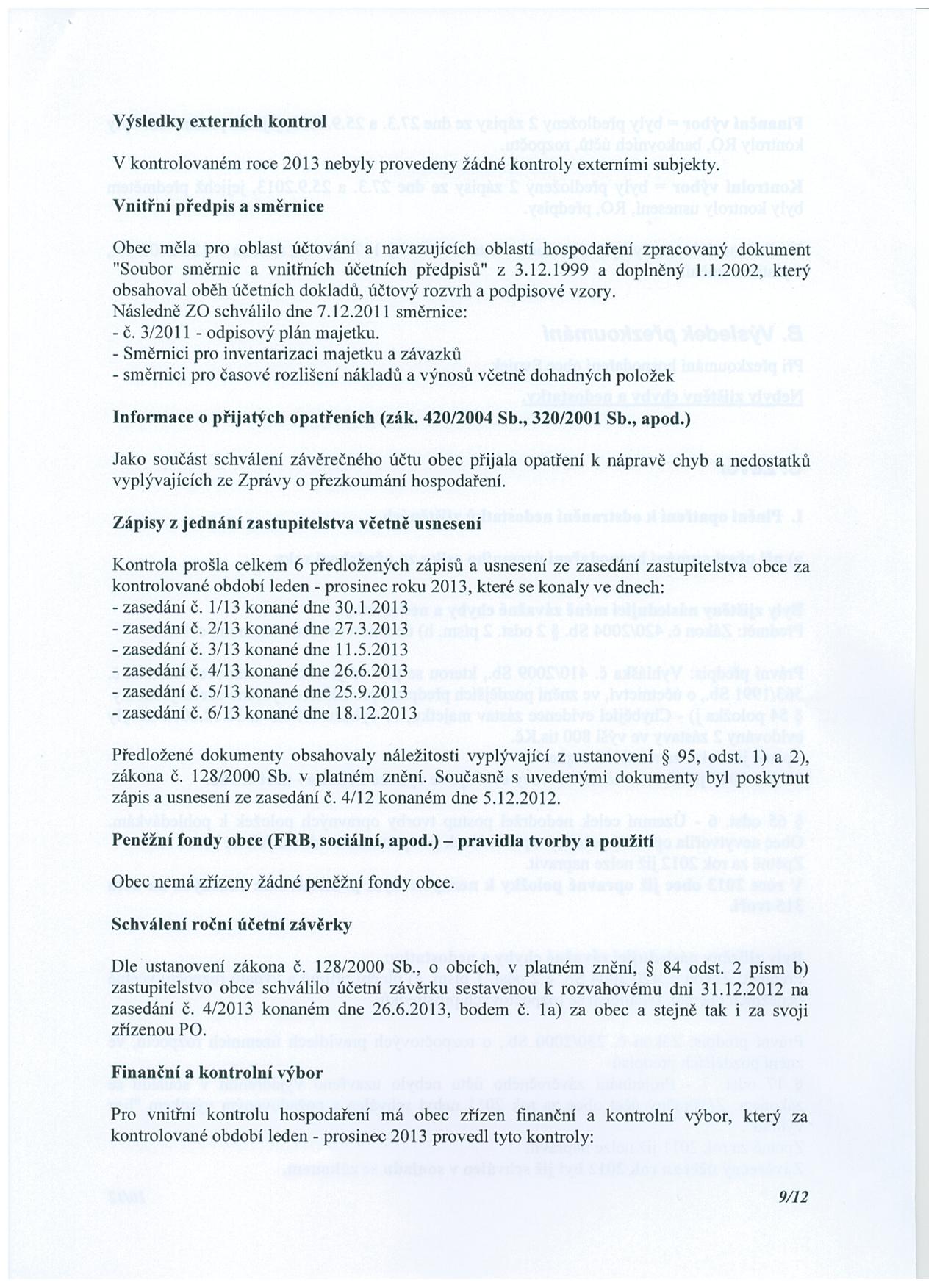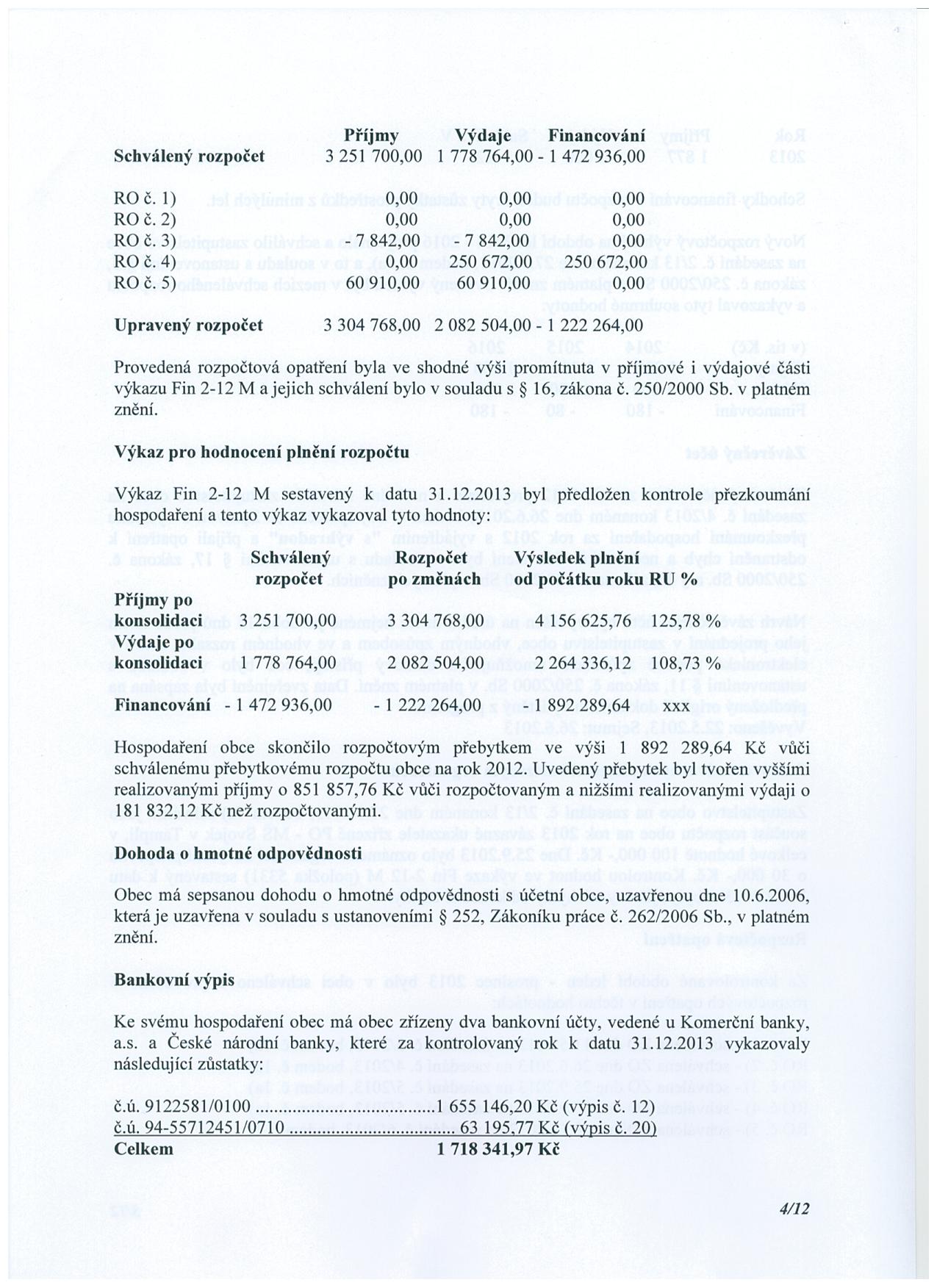 • Závěrečný účet a Zpráva o výsledku přezkoumání hospodaření obce